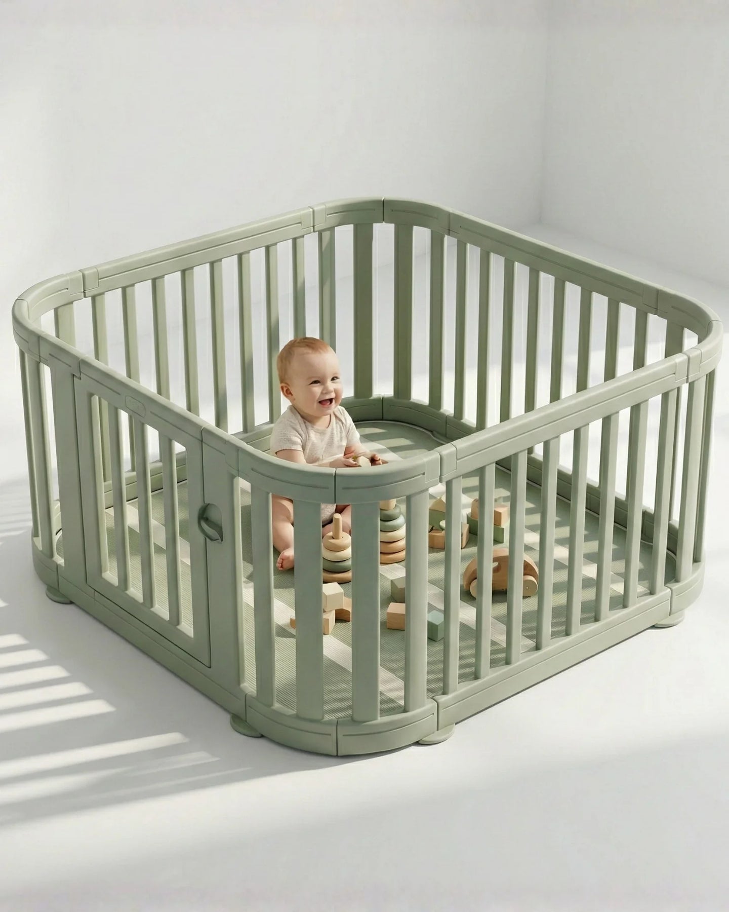 - Designed for Safety First: Smooth curved panels and a secure locking gate create a protected space where babies and toddlers can play confidently.