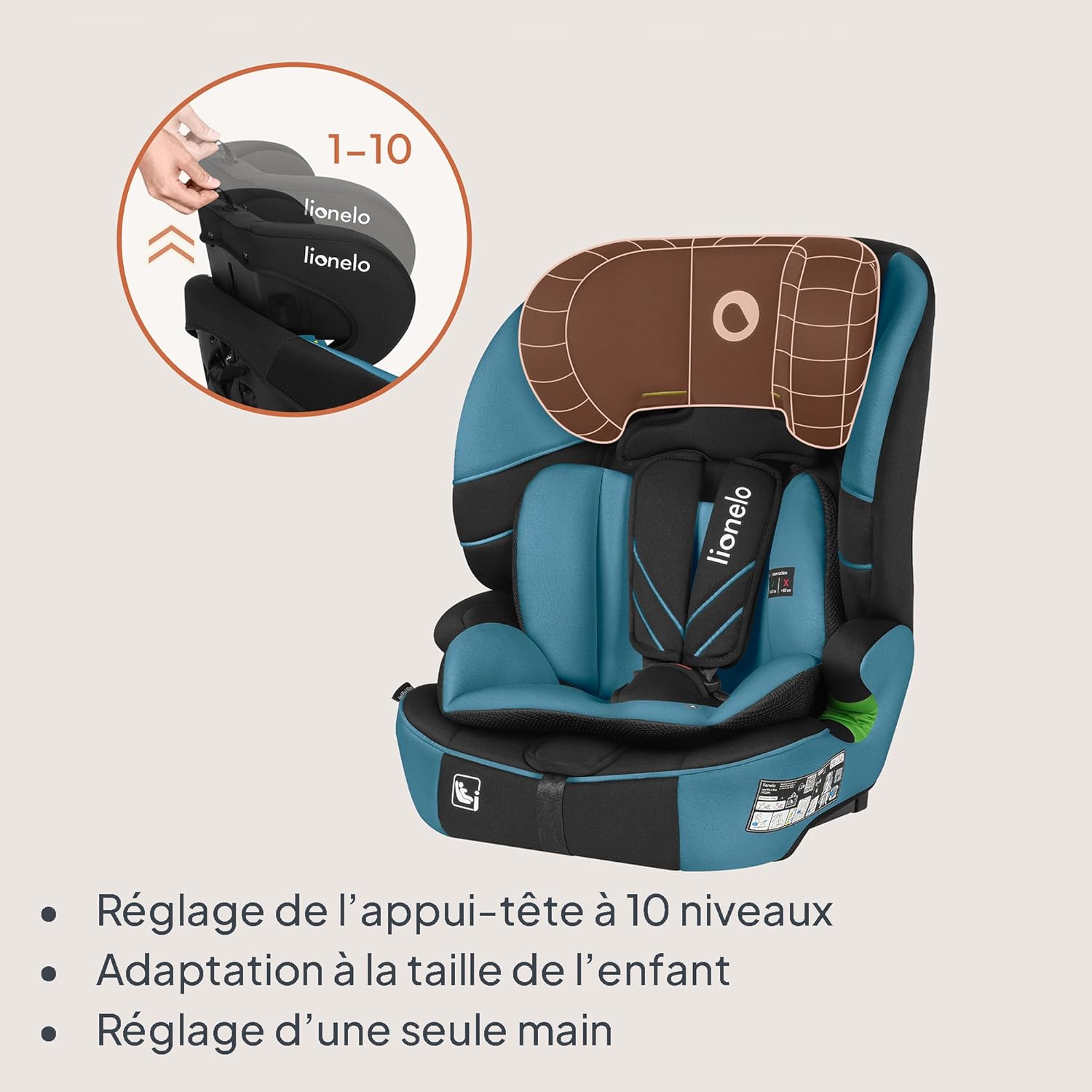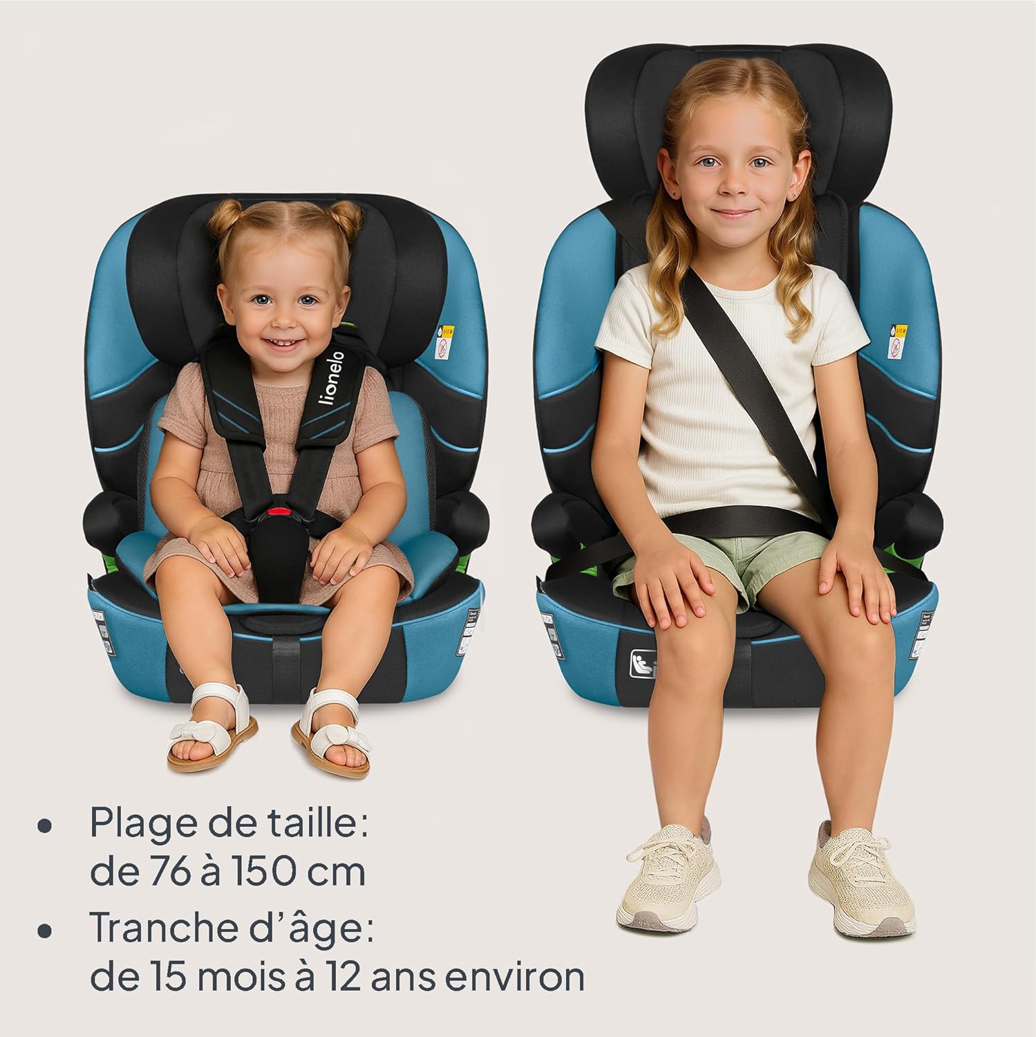 Looking for a long-lasting car seat that's comfortable for both toddlers and older children? The Levi Fix i-Size will last until your child needs a booster seat. Its wide seat, seat cushion, and wide headrest adjustment range ensure comfort for travelers of all ages and heights (76–150 cm). It's a car seat with key features for safety and comfort.