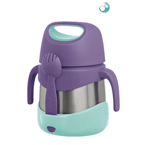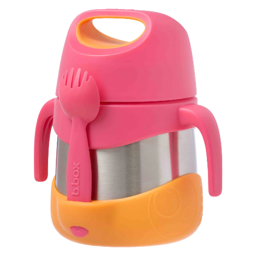 Keeps food at the perfect temperature all day, whether kids prefer warm pasta for lunch or cold refreshing fruit and yoghurt. Great for kinder and school with a 335ml capacity. Comes with spork utensil that tucks away into custom bumper. Easy grip handles give kids leverage to open the jar easily, encouraging independence.
