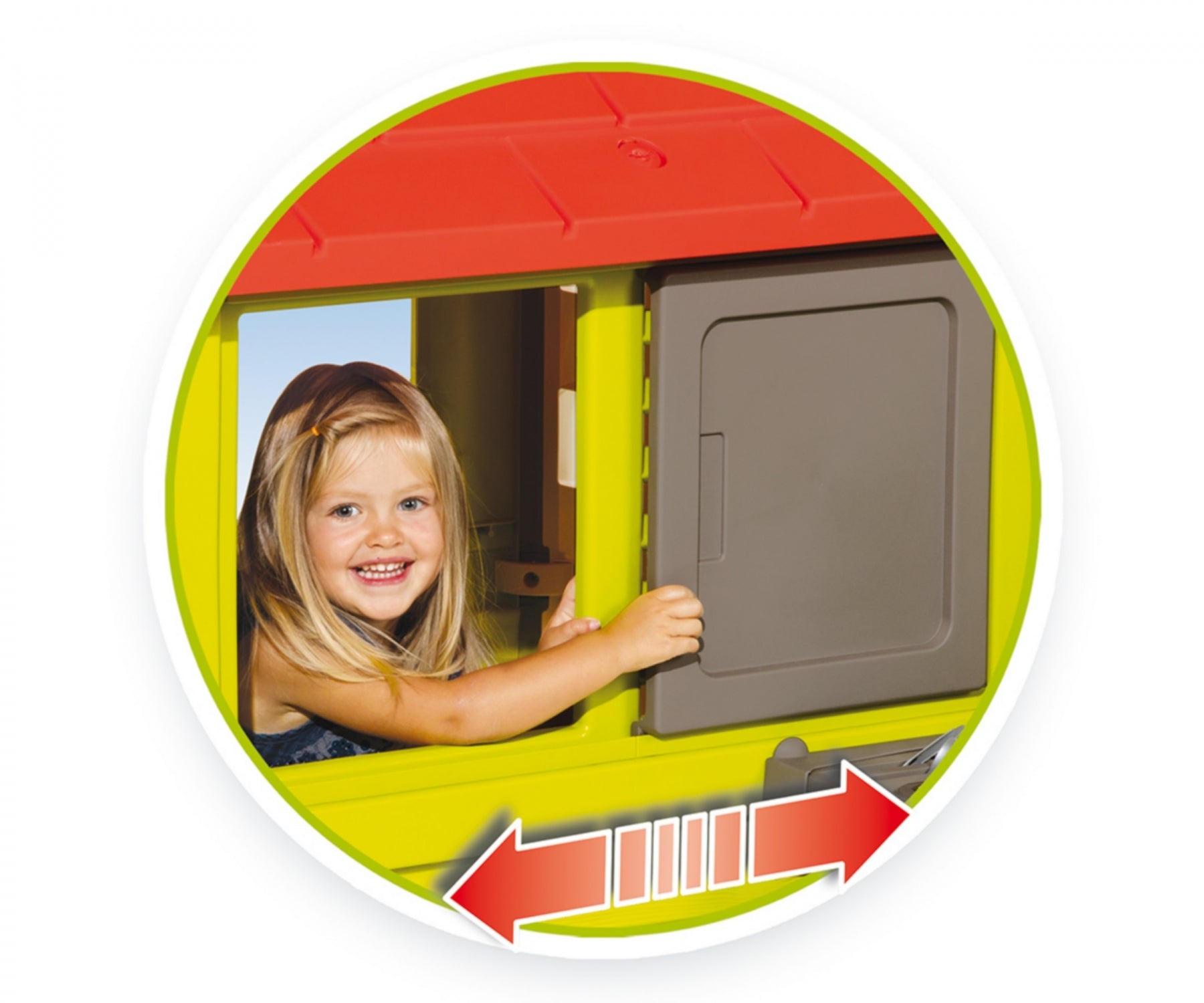The playhouse is very bright thanks to its 2 windows, but if your little ones want to have shade, they will just have to slide the shutters!