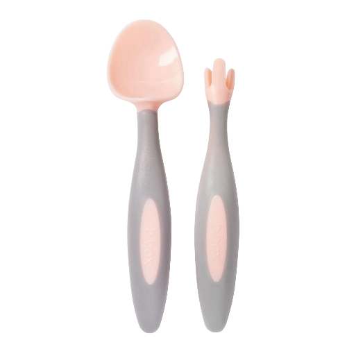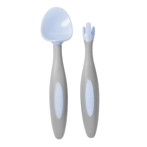 Our cutlery set has been designed with a leading paediatric occupational therapist (OT) as the ideal toolkit for tots who are ready to self feed. The unique spoon shape acts as shovel helping little ones to scoop up their food, even with a flat plate. The unique deep scoop spoon shape and angled handles encourages correct hand to mouth positioning, and helps to contain food within the spoon as bubs practices bringing it to his/her mouth, which means more food makes it to the mouth and less mess! Our unique flork has been designed to fit the size and shapes of little mouths. Its curved blunt prongs are gentler (and safer) on little mouths and gums. Set comes complete with a handy travel case to keep utensils clean before mealtime on the go, and after to prevent soiling in nappy bags or hand bag.
