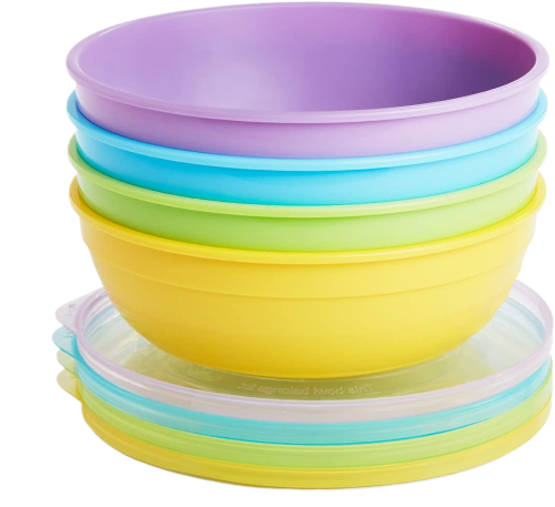 100% SPILL-PROOF 100% LEAK-PROOF: The Munchkin bowls are deep with high sides for easy scooping, and seal shut with the included lids. The set’s small plastic bowls are ideal as baby weaning bowls