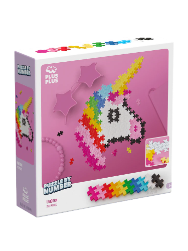 Immerse yourself in an enchanting world of play and fantasy with Puzzle By Number Unicorn! The box contains 250 colorful Plus-Plus pieces that can be assembled into a captivating unicorn.