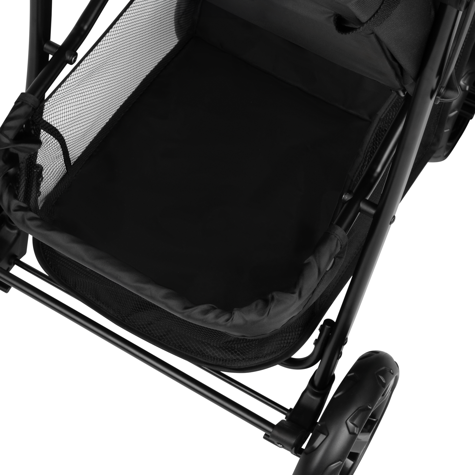 - It is packed with handy features to make parenting easier: an adjustable backrest for nap times, a bag, a spacious basket, and an organiser.