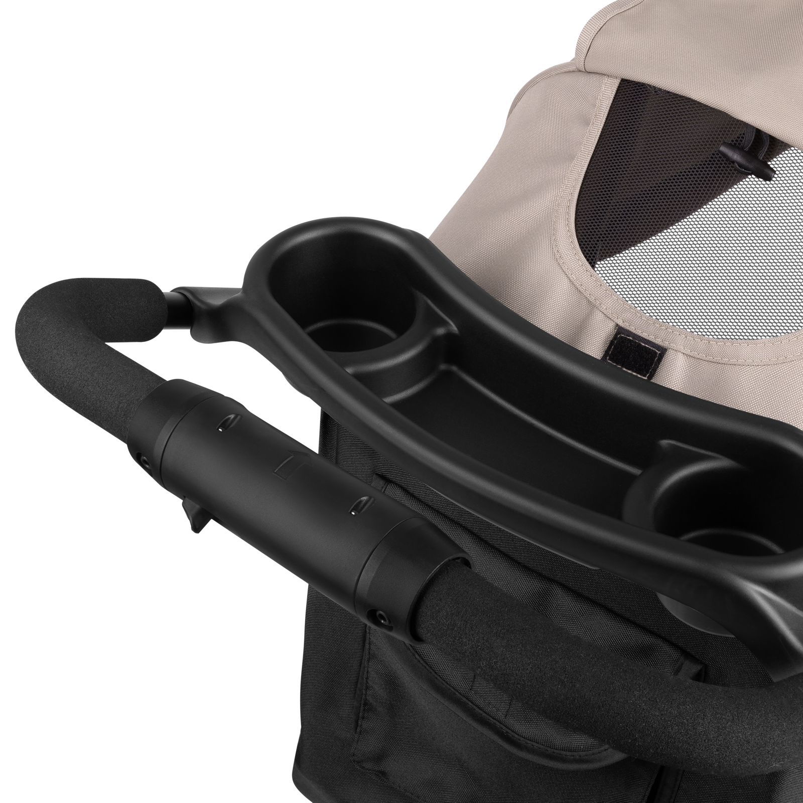The convenient bag can be attached to the stroller’s handle, providing a handy place to store essentials like snacks. The Velcro-fastened pocket behind the backrest offers easy access to essentials such as keys or a wallet.