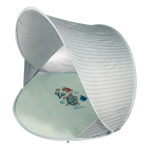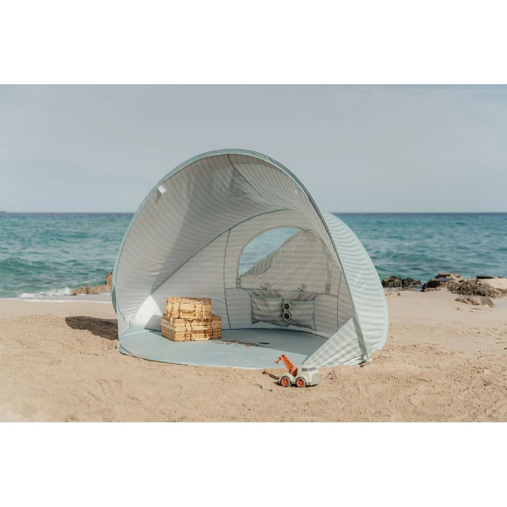 Hello Beach! This handy beach tent is ideal for every beach day. Under the tent you can sit in the shade while you can still relax and play. There is a handy compartment in the tent where you can put some things. The tent is easy to set up and fold. Ideal! The tent is perfect for sun, sea and beach all day long. Made of 100% 210T polyester with UV40 protection coating. Size: 122x110x122cm. Includes 4 pegs and a storage bag.