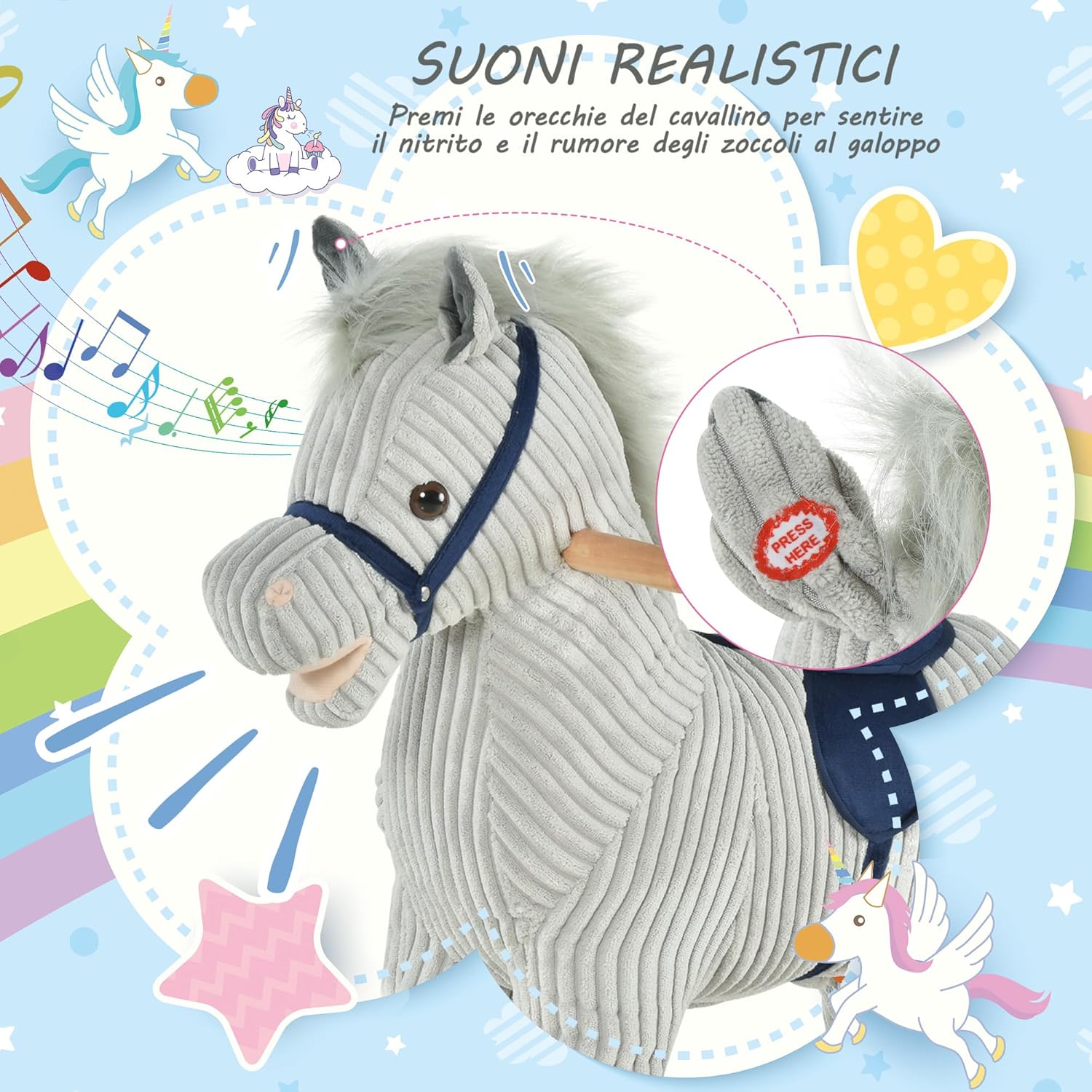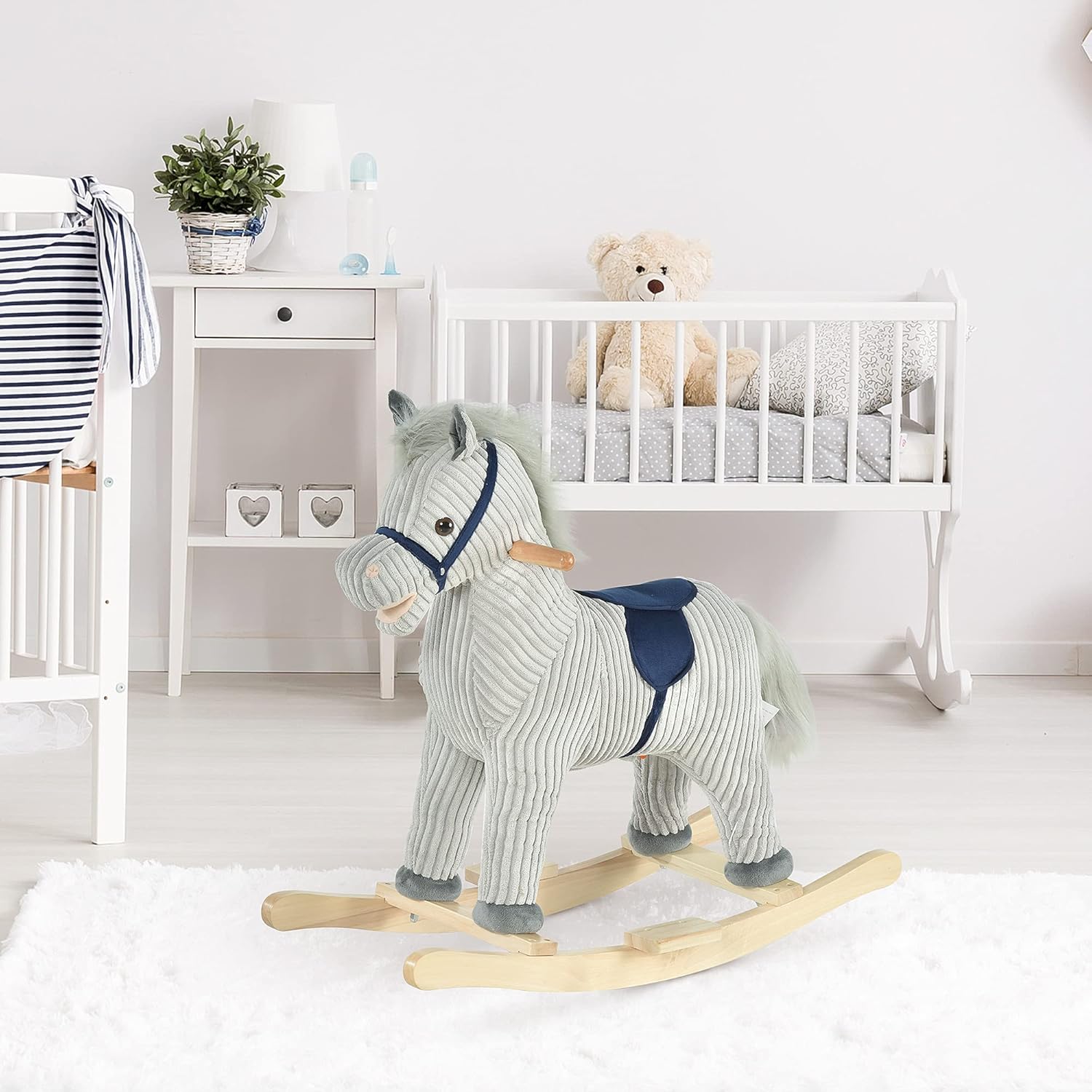 • REALISTIC SOUNDS: This rocking horse combines the traditional design of a horse with some updated features, such as the sound of a real horse neighing when you press the ears.